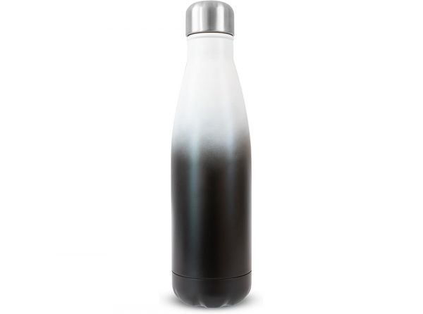 - Stainless steel thermal flask with a black grey blended finish