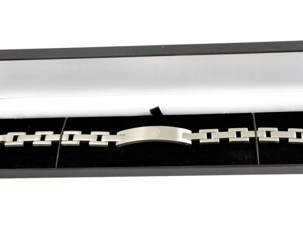 - Stainless steel linked bracelet with engraved Celtic FC crest