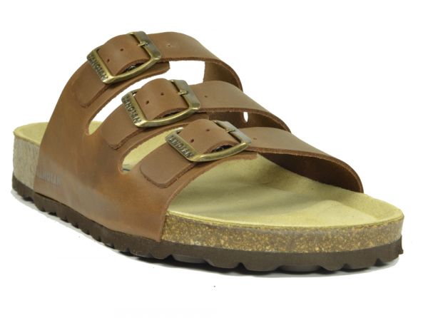 Sanosan Lisbon Leather Brown Men's Three Strap Sandals