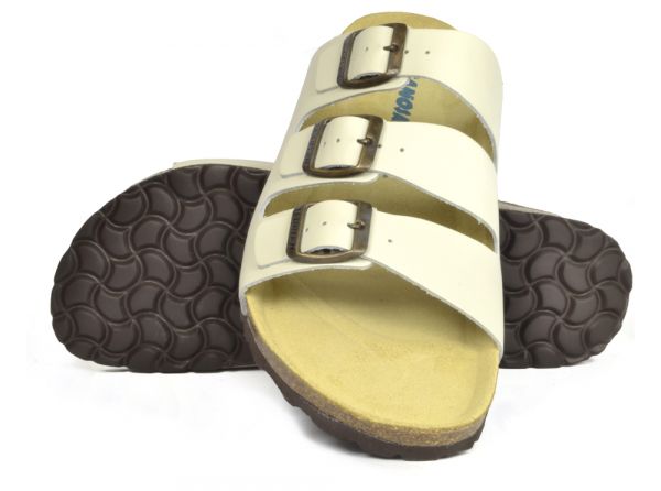 Sanosan Lisbon Leather Ivory Three Strap Men's Sandals