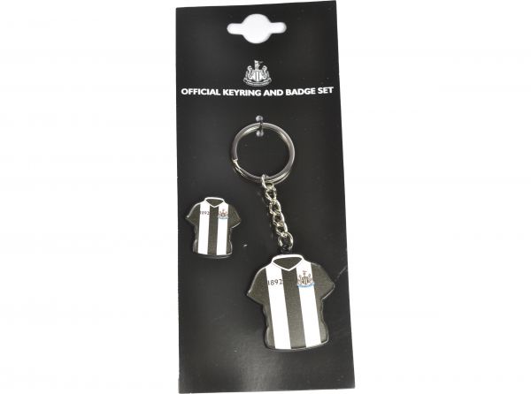 Newcastle United Shirt Shaped Keyring and Badge Set