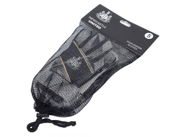 - Black and white goalkeeper gloves featuring the Newcastle crest in white